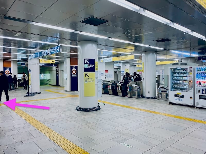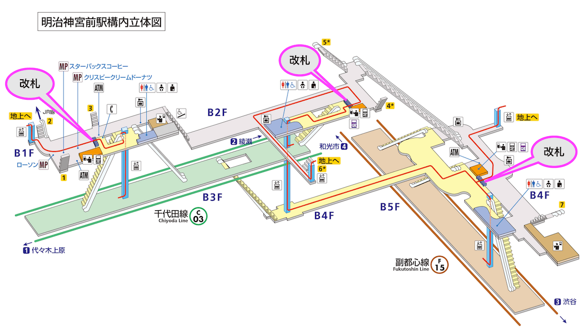すると改札がパンツ丸見え級に丸見ぇ〜てくる。この改札は「千代田線 明治神宮前駅」の西側改札になる。この改札を出る!