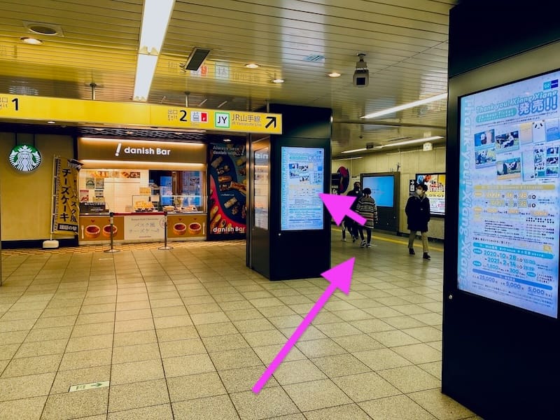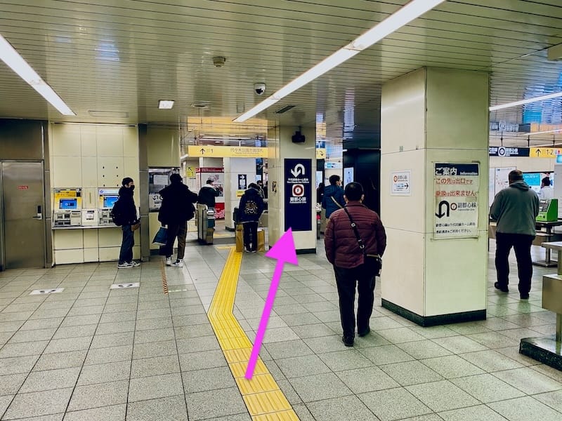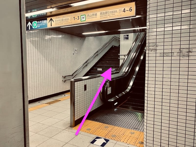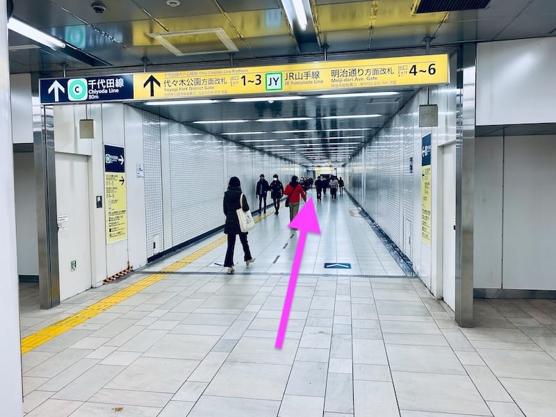 天井の案内板「代々木公園方面 出口1〜3」という記載のとおり、案内の方句へ向かって素敵に歩く!